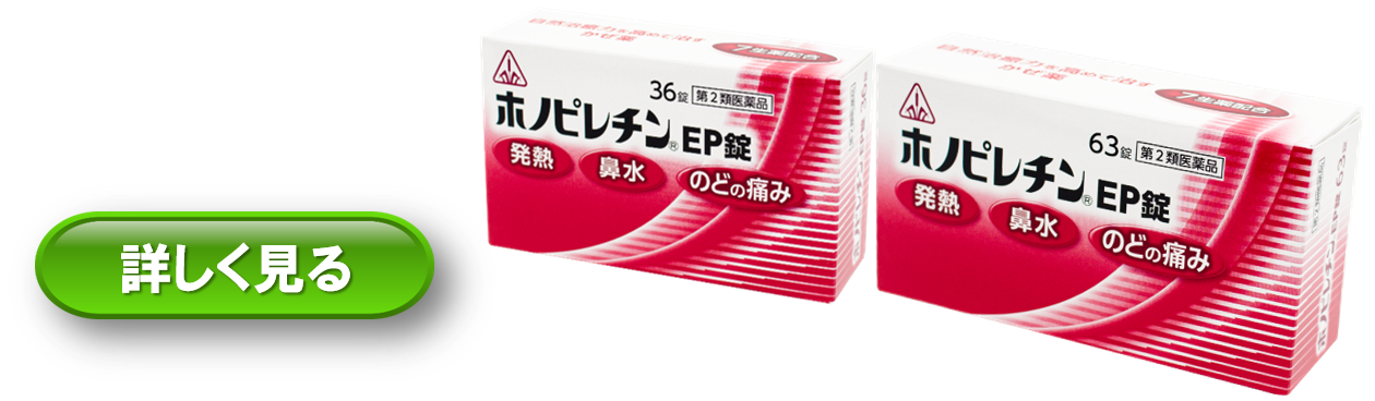 ホノミ漢方には、さまざまな風邪症状を鎮める西洋薬成分に加え、風邪の回復を助ける7種の生薬成分を配合した風邪薬ホノピレチンEP錠(第2類医薬品)があります。